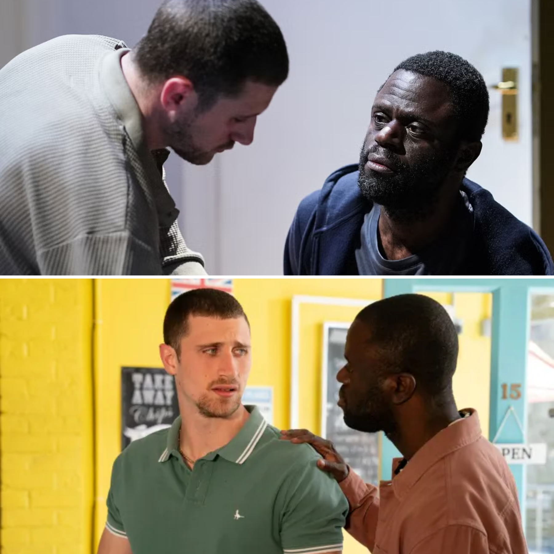 Harry Mitchell is being held hostage (Picture: BBC) Harry Mitchell (Elijah Holloway) and Kojo Asare (Dayo Koleosho) plot a daring escape