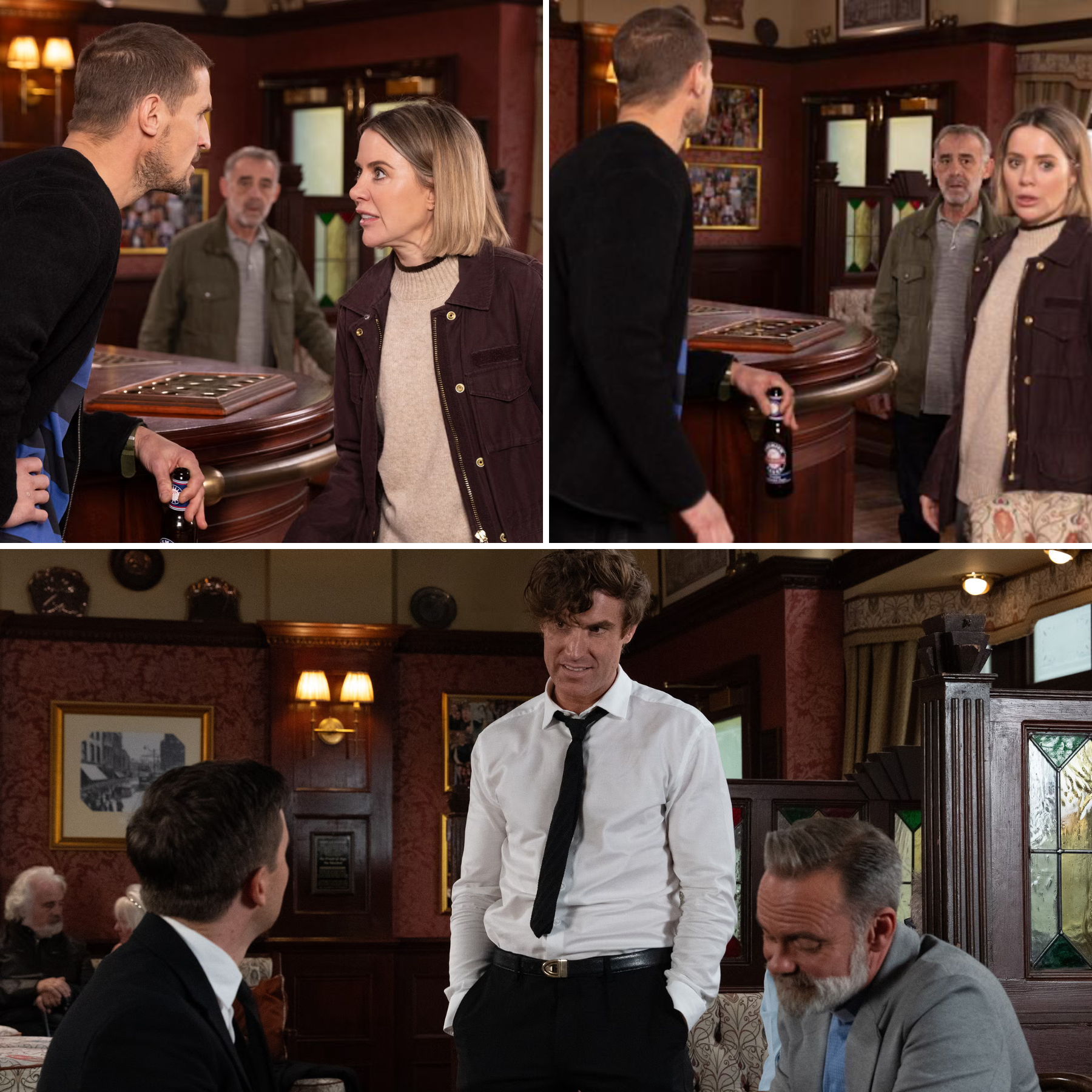 Todd and Billy went back to the Rovers after their visit to the hospital. Theo walked in at an inopportune moment and was annoyed to spot the pair. He grilled Todd and Billy about their day, but Todd evaded the subject.